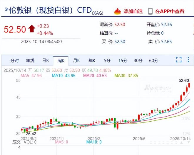 原来刘晓波金了之后,就轮到白银疯狂了!近几日,伦敦和纽约两大市场白银价格大幅上涨。正如我今天早上所写的,伦敦现货白银价格处于每盎司 52.49 美元的历史高位。纽约白银 CFD 价格刚刚触及每盎司 51.3 美元的历史新高。白银价格为何上涨?这背后的逻辑是什么?它真的能像一些机构预测的那样翻倍并超过每盎司 100 美元吗?白银价格飙升的主要原因有三个。首先,美联储进入降息周期。继 9 月份降息之后,今年还有可能再降息两次,并在 2026 年进一步降息。美联储资产负债表收缩很快就会停止。按照这个逻辑,黄金也暴涨。白银作为黄金的小兄弟,需要抵消黄金见顶后的上涨。国际黄金价格与白银价格之间的关系有一定的规律。一般在40到80次之间变化,但长期平均约为53次。今年黄金价格飙升,一度达到白银价格的100多倍。最近白银的抵消性上涨使这一比率回到了 80 倍左右。从历史上看,最贵的黄金比白银贵123.5倍(2020年3月新冠病毒大流行期间),最低为15.8倍(20世纪80年代白银投机热潮期间)。市场普遍认为,如果金价达到白银价格的80倍以上,白银将抵消上涨或黄金将下跌。相反,如果黄金价格低于白银价格的40倍,黄金就会上涨,白银就会下跌。目前,大家都认为金价仍有上涨空间,许多人认为白银也将创出新高。然而,我们不能忽视时代潮流的变化。世界各国央行正在改变其政策对黄金的看法并继续增加黄金储备。这可能会改变之前黄金和白银价格之间的关系,并形成新的规律。其次,随着越来越多的地方利用白银发展经济,对白银的需求大幅增加。白银的实际用途比黄金好得多。例如,白银需求的50%来自于电子电力、太阳能和新能源。他们来自医疗、感光材料、化学催化剂等行业。几乎所有的电子产品如电脑、手机、电视等都离不开白银。太阳能电池板的制造需要大量的银来制备导电银浆。随着全球能源转型,太阳能行业对白银的需求持续增加,是推动白银价格的关键因素。银还具有优异的广谱抗菌特性,用于我医用绷带、抗菌织物、医疗器械和公共设施的表面涂层。银是许多化学反应的有效催化剂,例如乙烯氧化成环氧乙烷。银基焊料用于牢固、耐高温的连接,通常用于空调、汽车和其他行业。实际需求的增加也是白银价格上涨背后的“硬逻辑”。三是资本投机力量所致。自 2021 年中期以来,伦敦白银市场的库存下降了三分之一,自由流通的库存仅剩 2 亿盎司,较 2019 年中期超过 8.5 亿盎司的高点下降了 75%。一旦市场看到库存下降、需求增加、金价上涨的拉动明显,自然会有投机资本涌入参与。炒作。白银市场的总规模还不到黄金的九分之一,相当于小盘股证券。一旦开始猜测,一切都会变得更加疯狂。当然,秋天也很浓烈。过去几十年来,白银经历了三大牛市。第一轮,从1960年代到1980年代初期,白银价格从每盎司1.3美元上涨到50.35美元,涨幅超过37倍。然而,到了 1982 年,它已经跌至 4.9 美元左右。在2001年至2011年的第二轮牛市期间,价格从4美元上涨到近50美元,上涨了11倍。在接下来的四年里,这一数字下降了 70%。第三轮牛市从2020年至今,从12美元开始,目前上涨至51-52美元左右,创历史新高。国内主要白银生产企业有豫光金铅、江西铜业、紫金矿业、云铜恒邦、湖南银业、胜达资源、山金国际等(注:以上公司名称仅供信息交流之用)ly,不构成建议。市场有风险,投资需谨慎。)太阳能行业的发展正在拉动白银的需求。由于银太贵,领先企业正在开发“银换铜”技术,例如开发镀银铜浆料以减少银的使用量。另外,通过图形化和电镀工艺直接沉积铜形成栅线,从而实现完全无银。太阳能行业是工业白银需求的主要来源,2024年将约占全球工业白银消费的17%至32%。如果“铜变银”技术继续进步,预计到2027年全球太阳能白银需求将比2024年下降24%,这将对未来白银需求产生重大影响。推动上述技术进步的公司包括 Daiku Co., Ltd.、Aishu Co., Ltd.、Towa Ma特瑞尔斯股份有限公司、通威股份有限公司(请注意,以上公司名称出于信息共享目的,不予推荐。这是一个高风险市场,投资时需谨慎。)